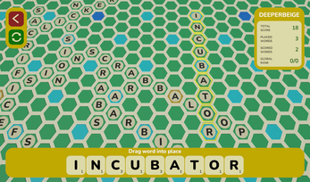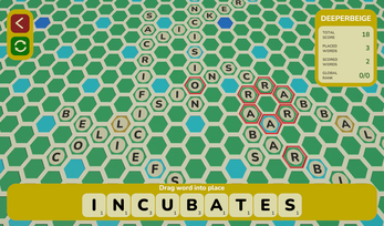 Exercise your vocabulary with Scrabbaloop. It's a bit like Scrabble, but there's no tile limit, no turns, and an infinite global shared hex board. Oh, and you only score if your word makes a loop with previously added words. Also, just like in regular Scrabble, you have to have at least one overlapping letter tile on the board.
